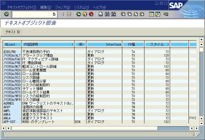 使用可能なテキストオブジェクトとそれぞれの属性は、テーブルTTXOB で定義されていますので、そのテーブルから調査することができます。