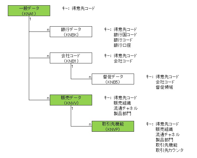 以下の図で得意先マスタの各テーブルの関連関係を示します。
